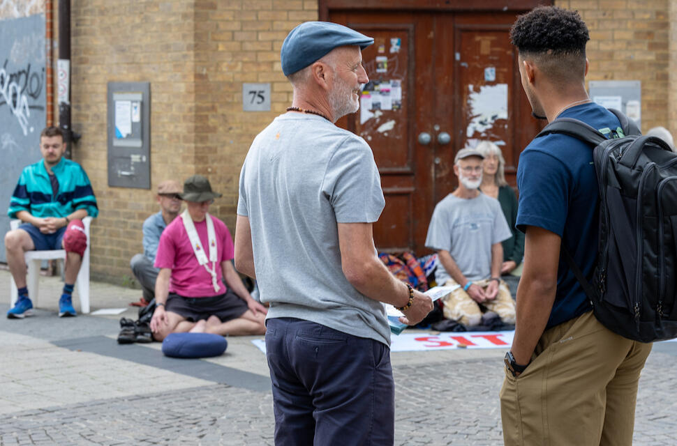 On our 10th Big Sit, as usual we were joined spontaneously by passers-by moved by our stillness. Outside The Grafton.