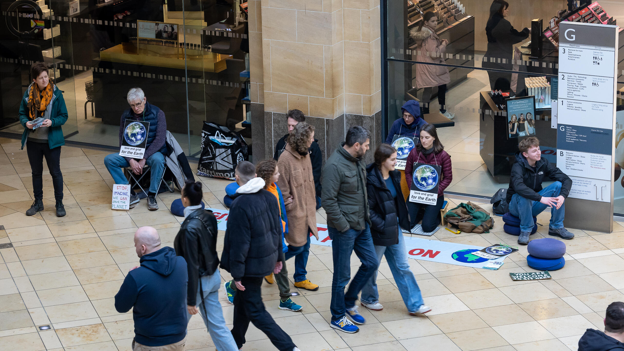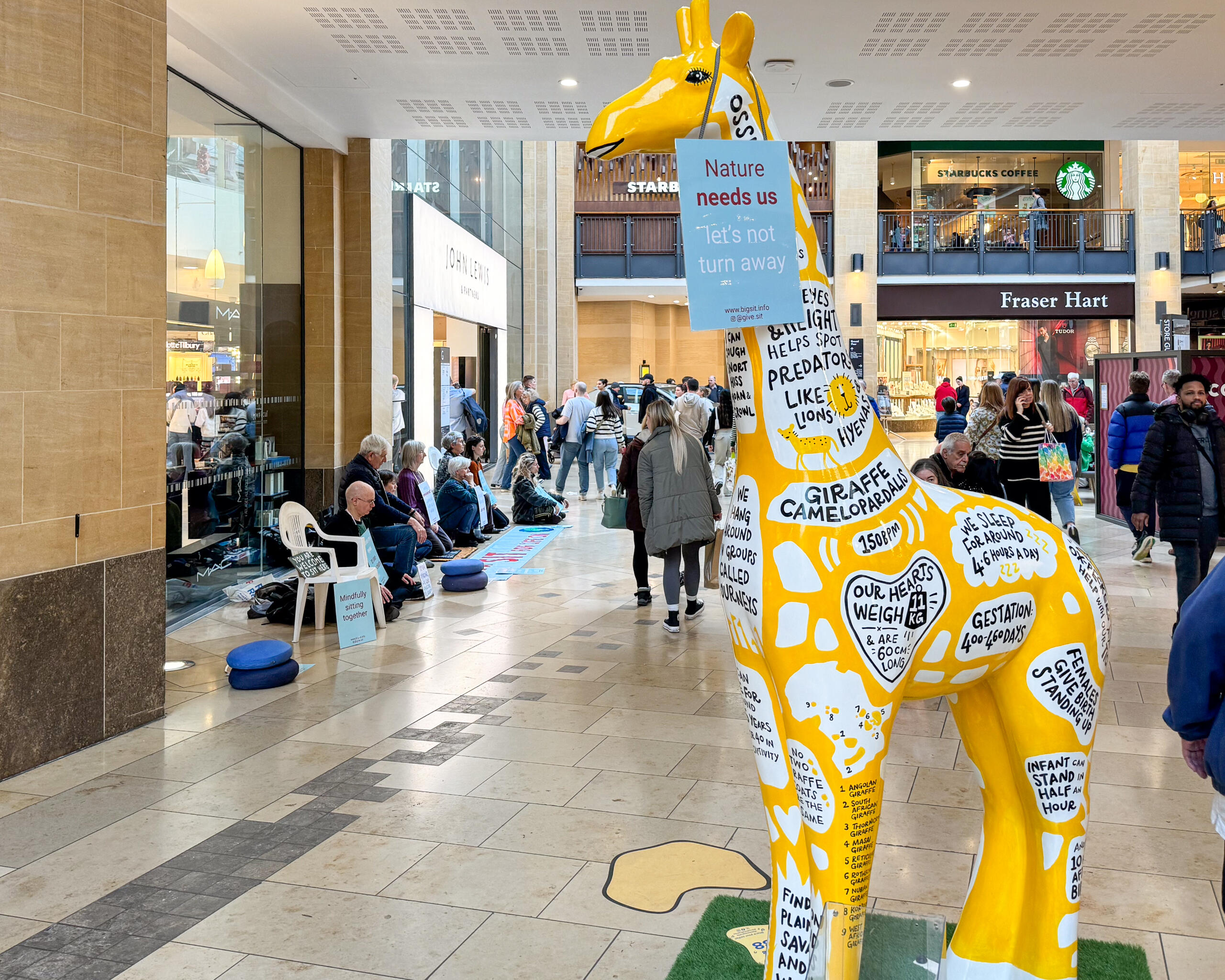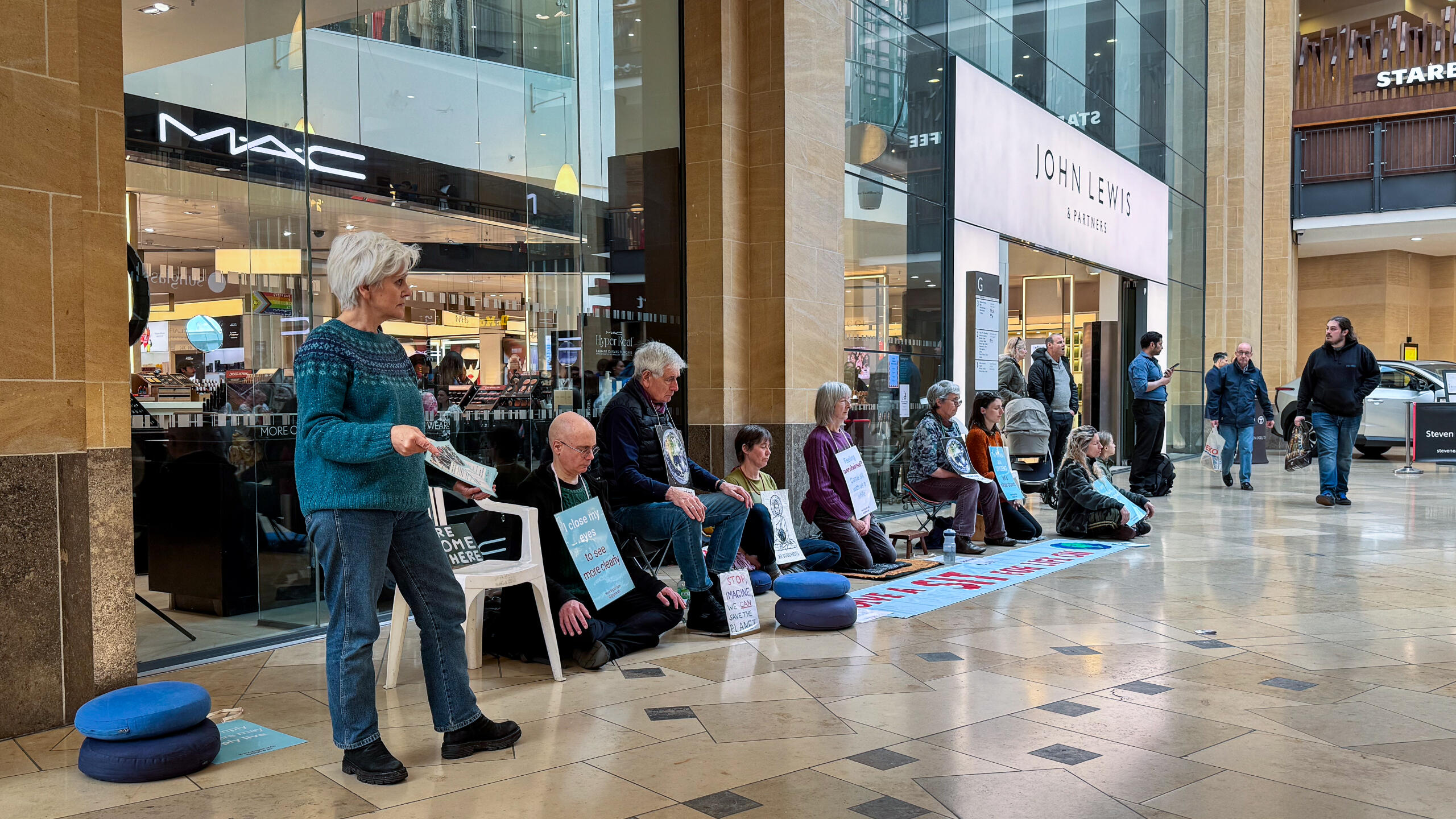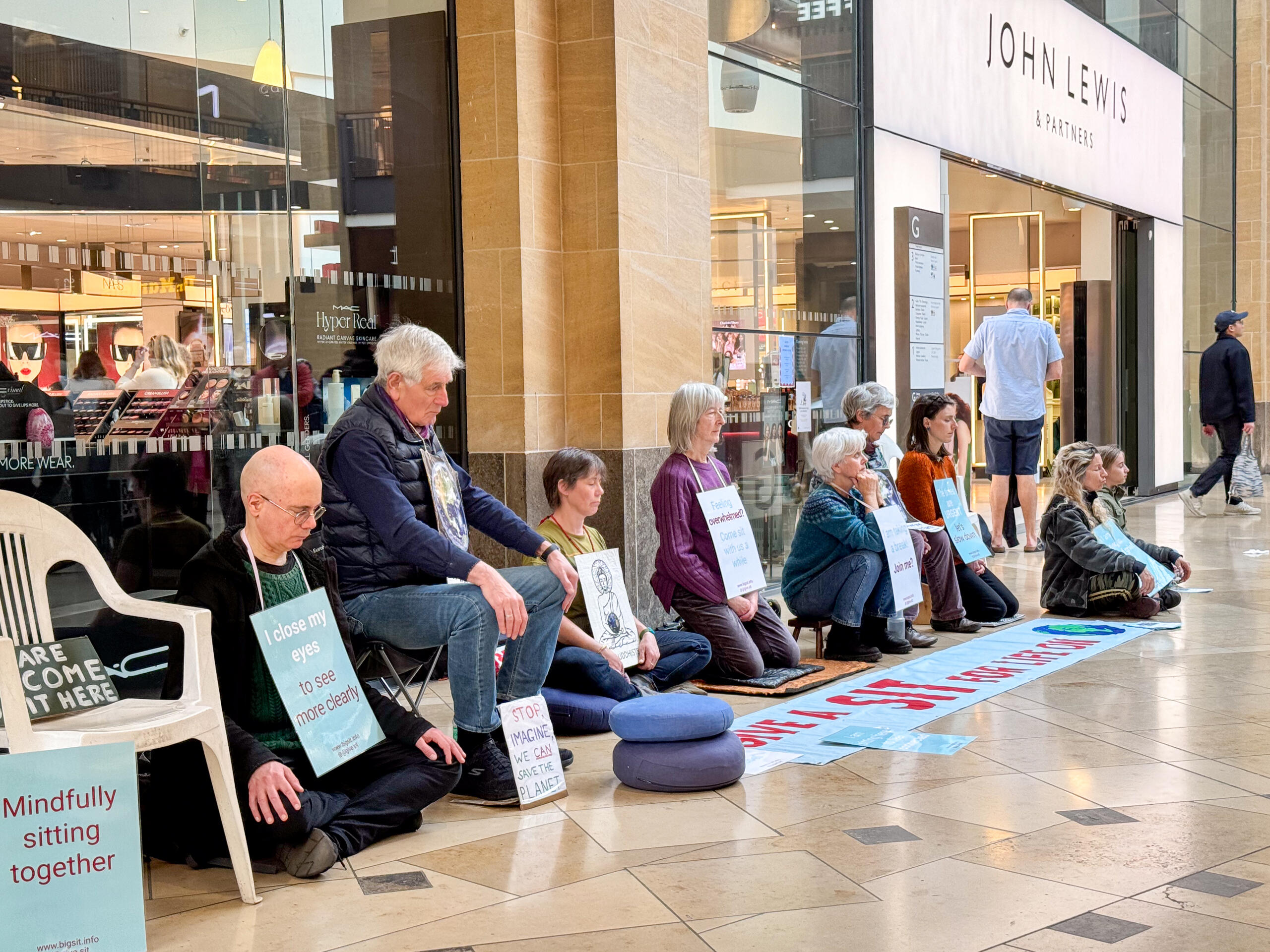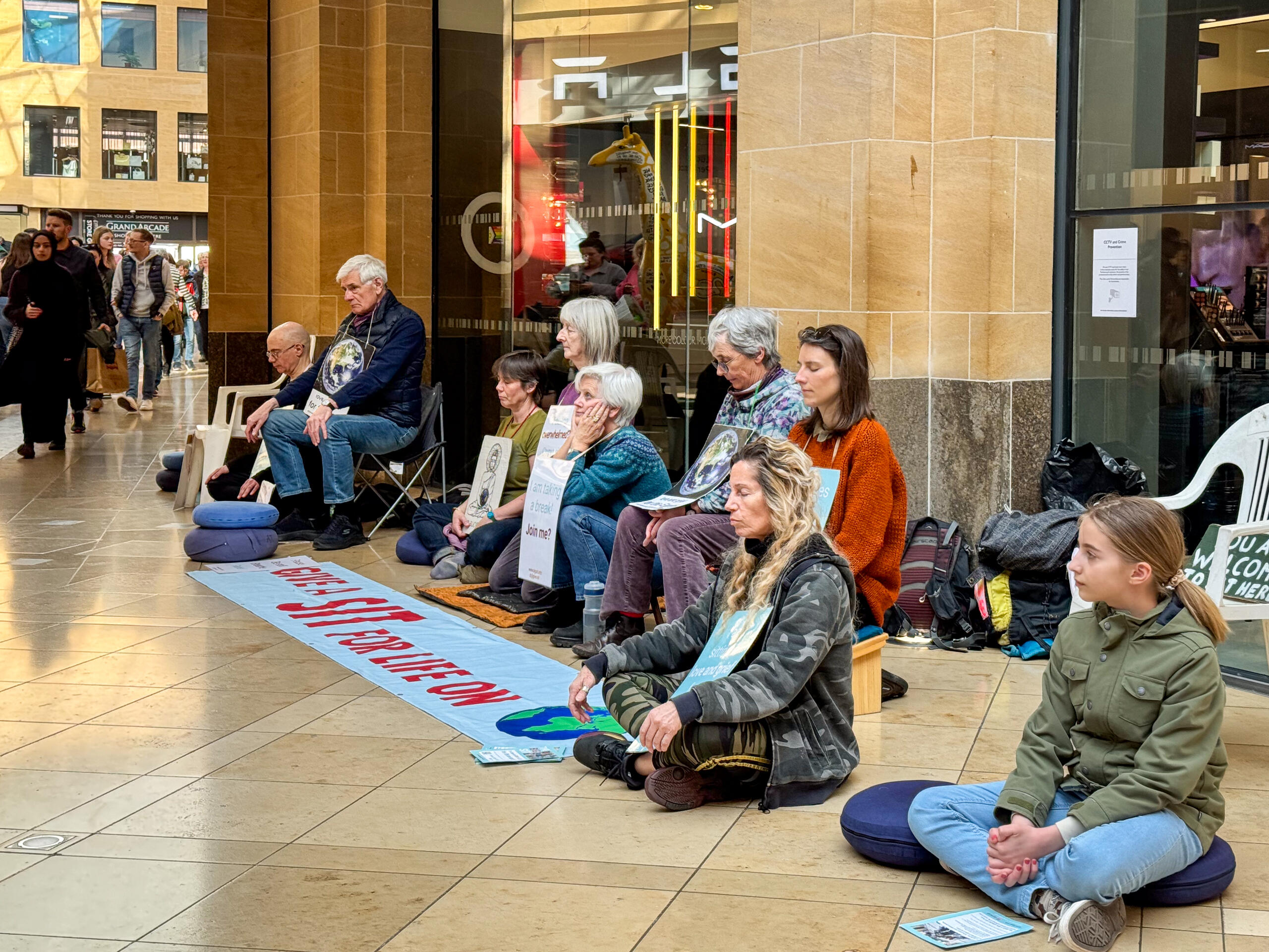 We moved to the Grand Arcade, where about 14 of us sat by the entrance to John Lewis department store, causing quite a scene.