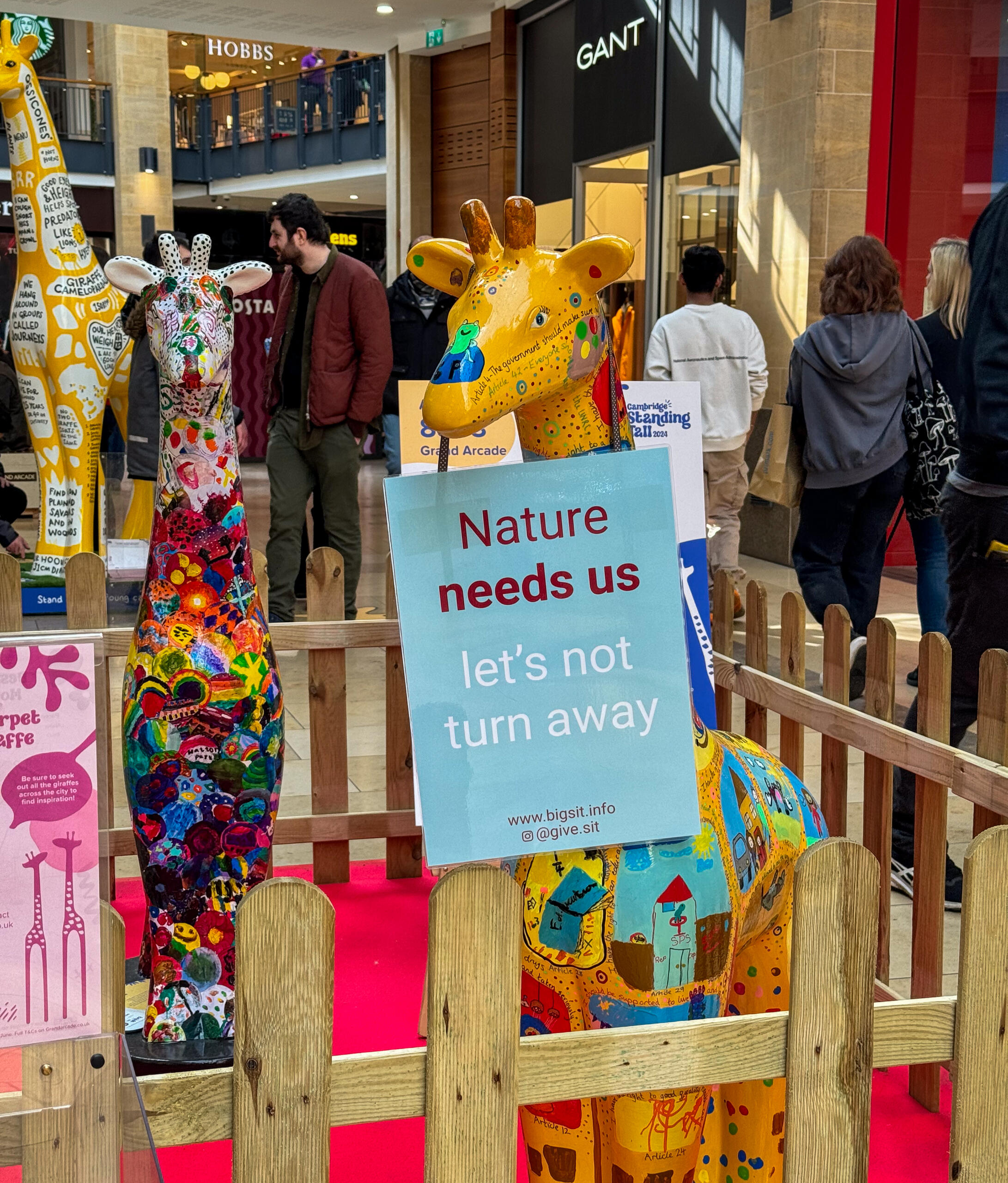 Even without leaflets, 12 Big Sitters got a strong message across to thousands of shoppers at Grand Arcade.